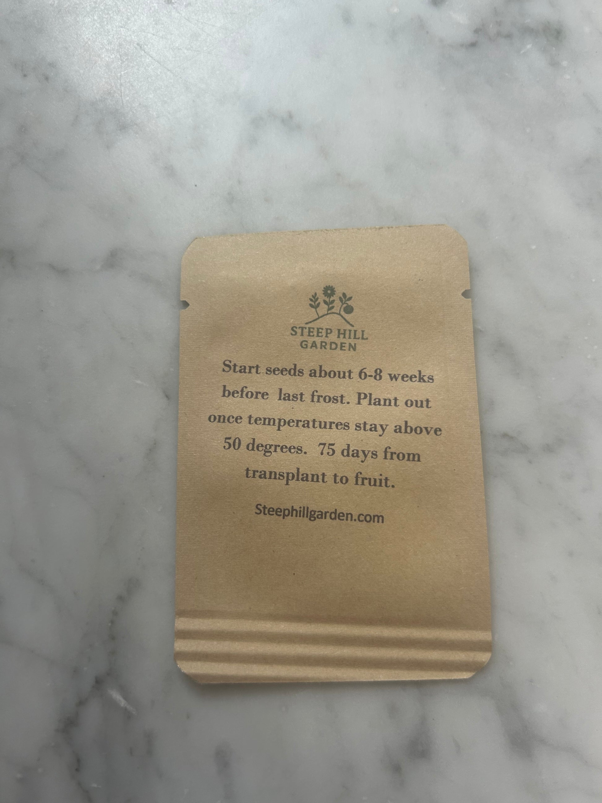 Start seeds in a very warm location 8+ weeks before planting. A heat mat will speed up germination (an oven-proofing drawer is even better). Seeds can be slow to germinate and can take 4+ weeks. Germination is sporadic; some may germinate at 3 weeks and others at 6 weeks. Harden off (take the plants for increasing amounts of time and light) for a week before you want to plant out. Harvest continues until frost.