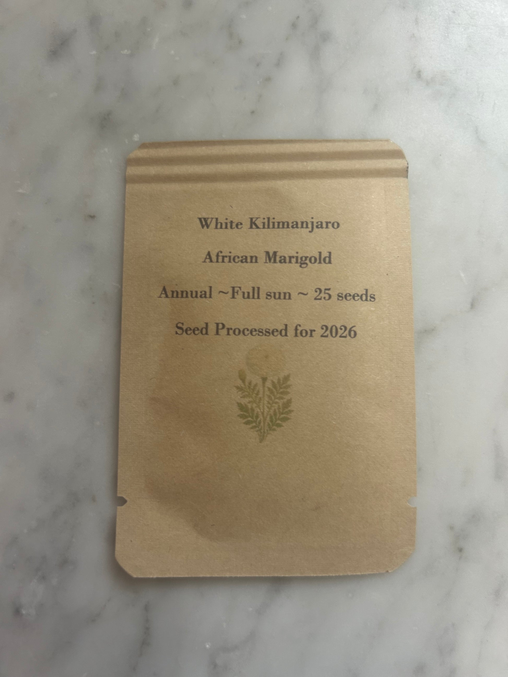 White Kilimanjaro White African Marigold - 25 or 100 Seeds, Annual Flower, Full Sun